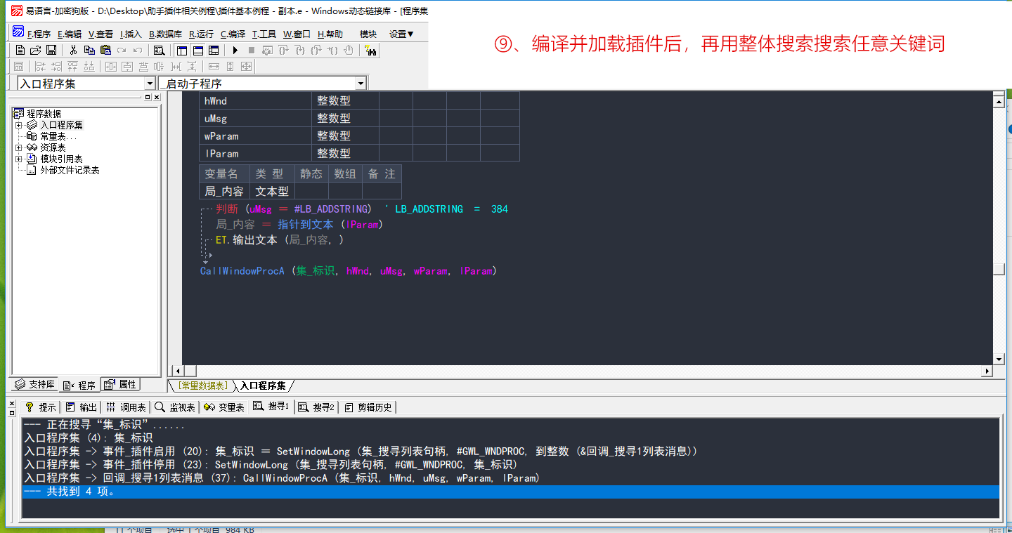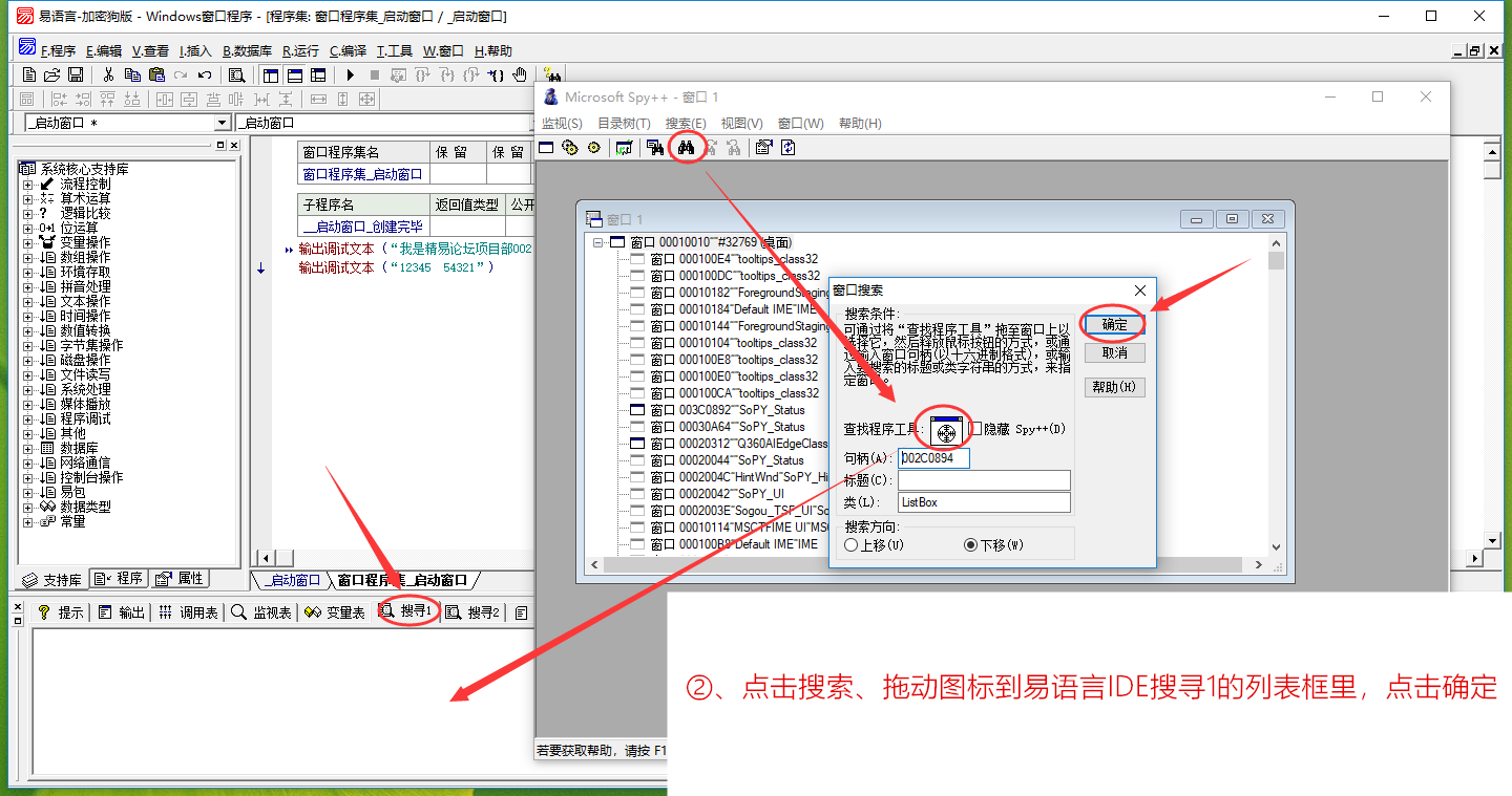 在开发易语言助手插件有关窗口操作的时候,此工具是必备品!前面的接口文档中有介绍用此工具分析易语言主窗口改变大小的消息,如果是控件消息呢?本文再以易语言状态夹的搜寻1的列表框为例,介绍此工具的使用方法。