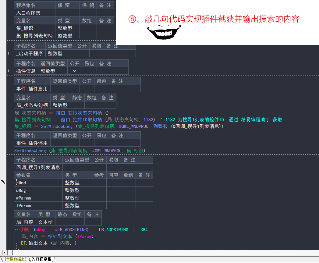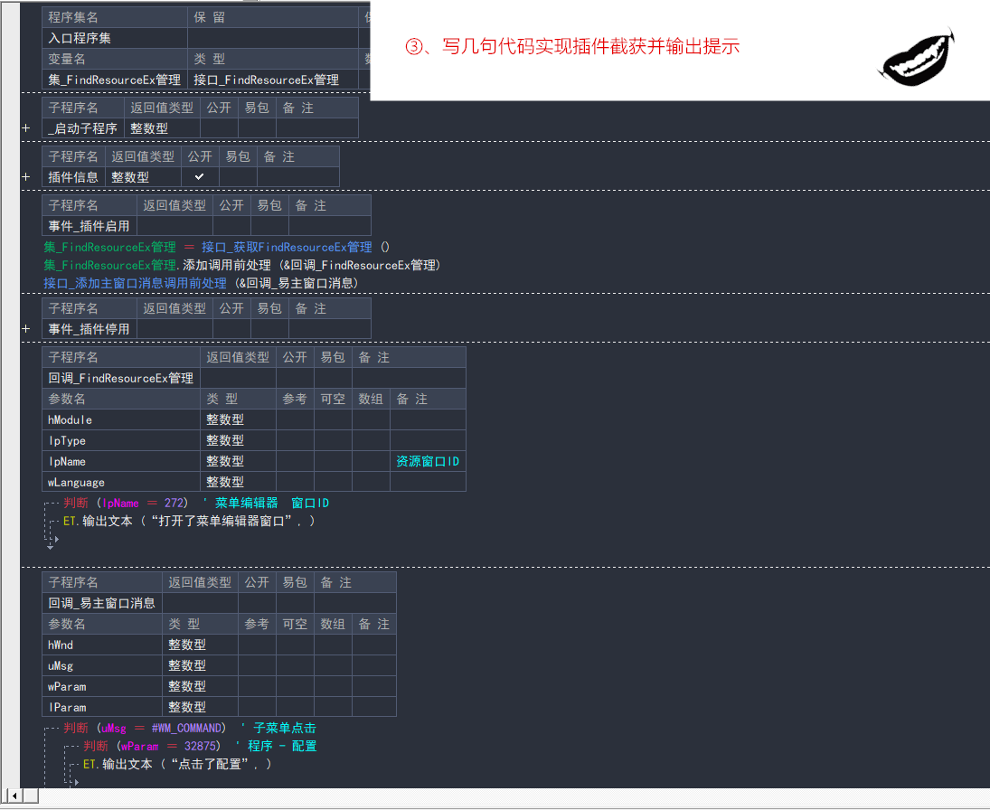 其他资源窗口或菜单也是相同操作,如果是插件的菜单,可以直接输出 wParam 值获取插件菜单的ID(黑月编译器的菜单ID)