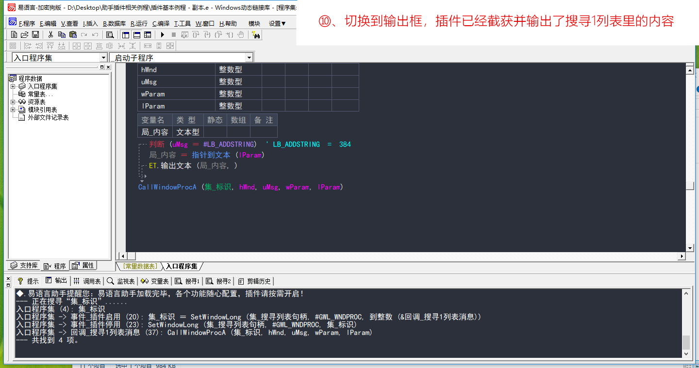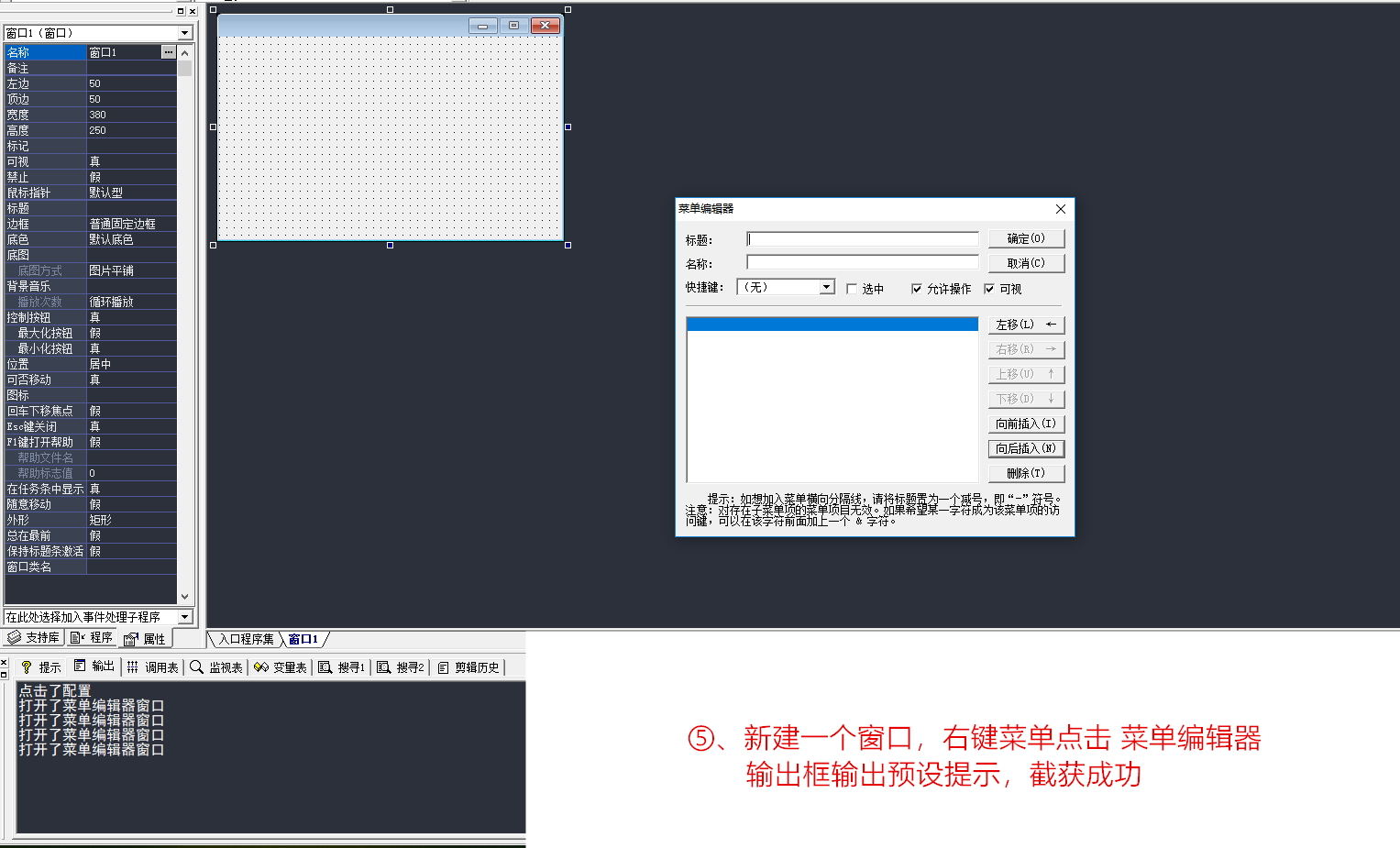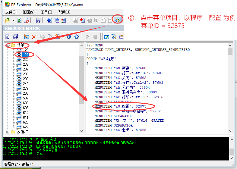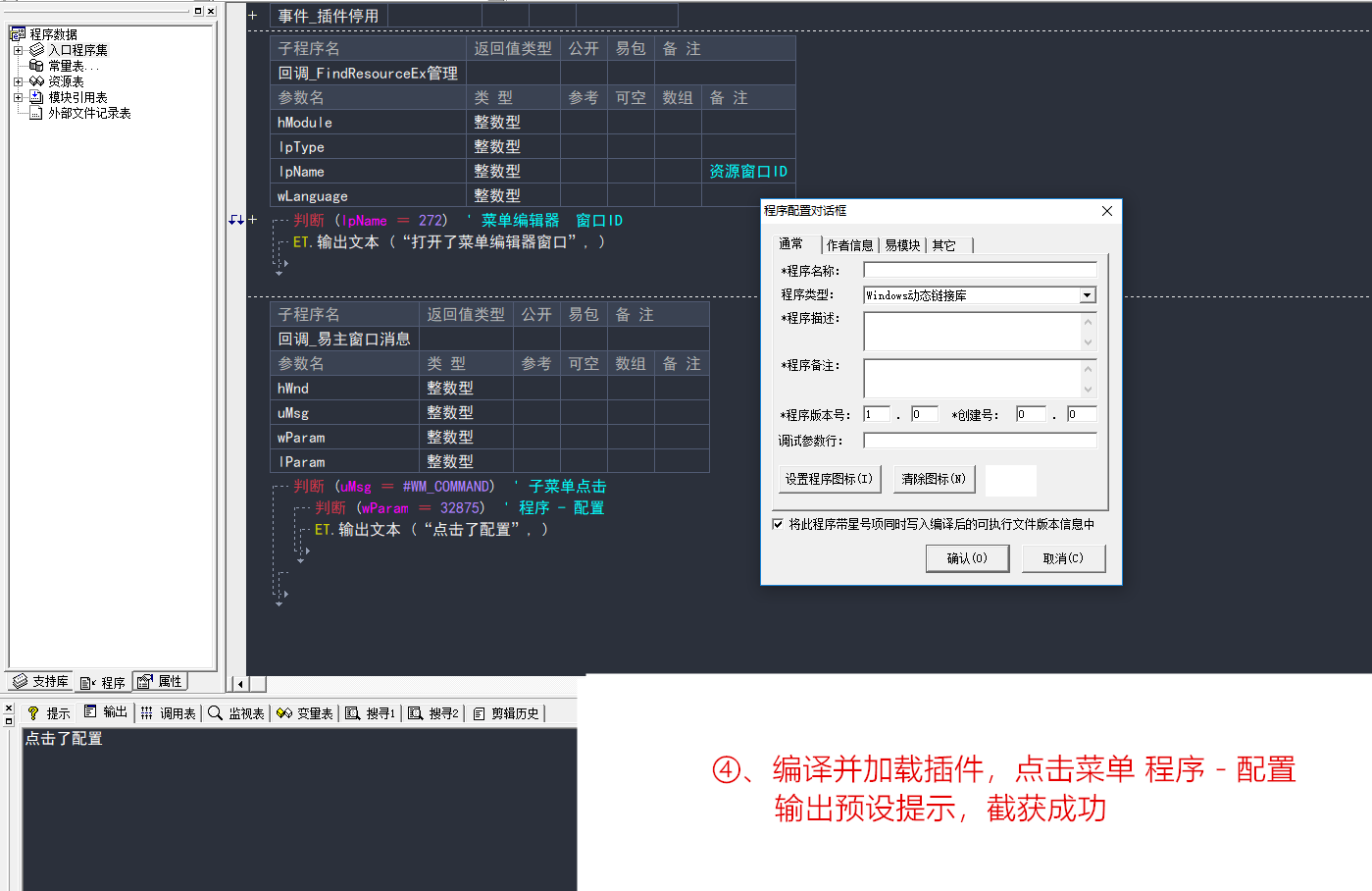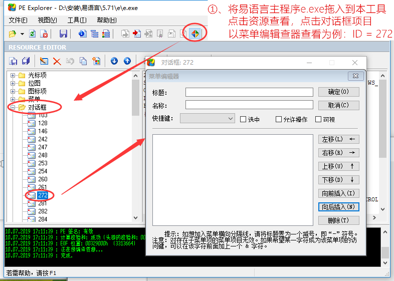 经过以上操作,我们已经晚了对易语言IDE资源窗口创建与菜单ID点击动作截获了。