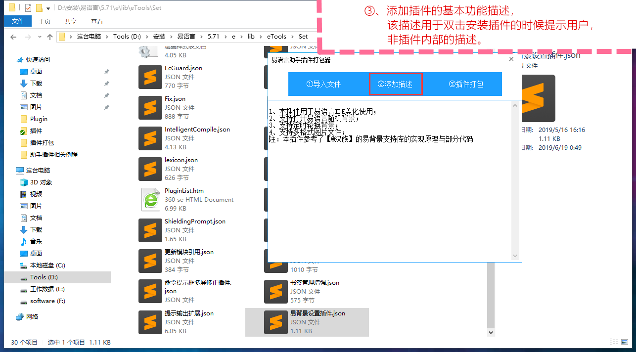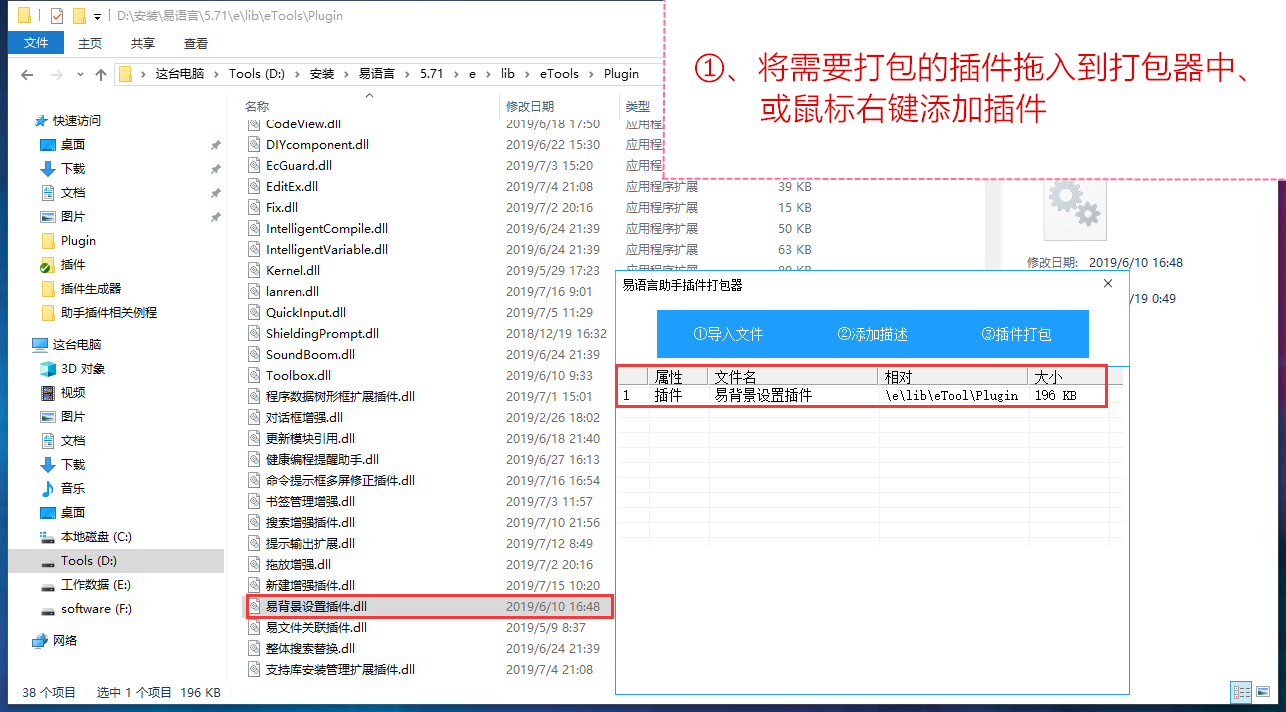 1、配套易语言助手SDK打包程序,仅用于易语言助手插件打包;